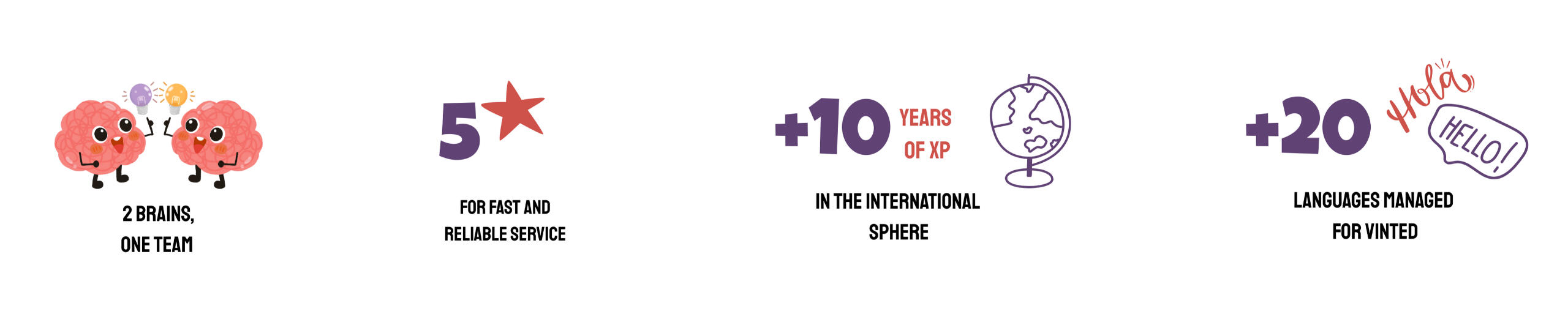 … and find yourself dealing with:💣 Misused AI: fast, yes, but without sharp prompts and a native's discerning eye, it ends up producing unappealing content (that also misses the mark!).💣 No native in-house resources to handle and publish your content in several languages.💣 An endless backlog: you’re already managing 3 communication channels and 6 languages, and there are only 24 hours in a day!💣 The fear of making a cultural faux pas: wrong colors, off-tone messaging or too-literal translation can quickly hurt your credibility and hinder your success in a new market.💣 Impersonal agencies, where you have 1,000 different points of contact, drawn-out processes, and a steady stream of junior team members who come and go.So, what if you had an easy way out? 😋👉🏼 Turn to a dynamic duo that’s ready to support your multilingual growth with an agile approach to deliver culturally relevant content.